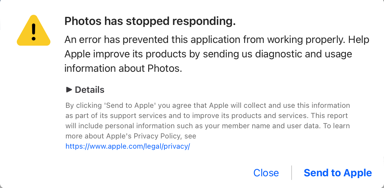 One month ago I started having trouble access my iCloud photo, prompt 'Photos has stopped responding'.