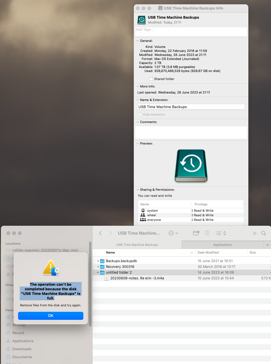 "The operation can’t be completed because the disk “USB Time Machine Backups” is full."