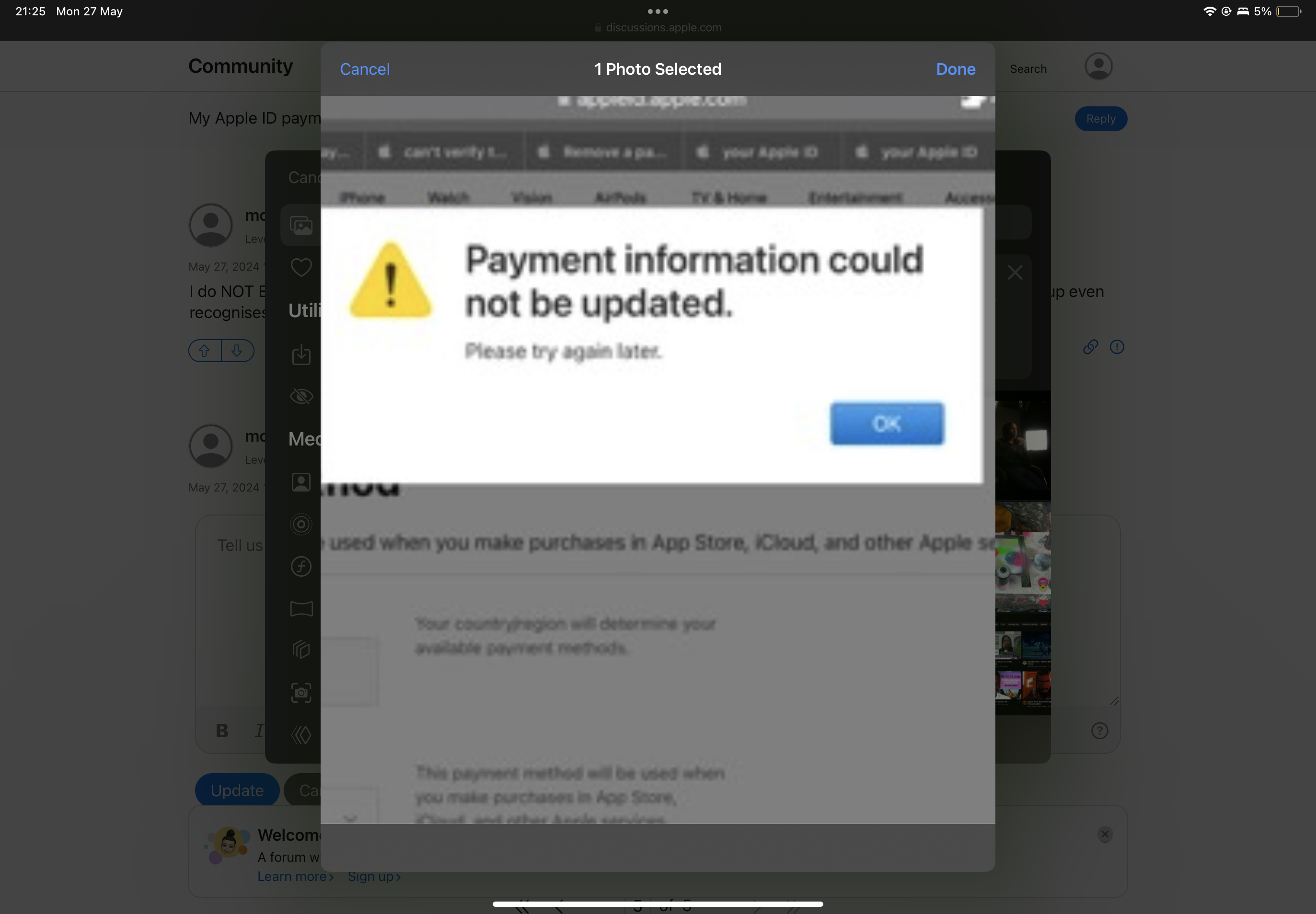 Received message iCloud method of payment denied