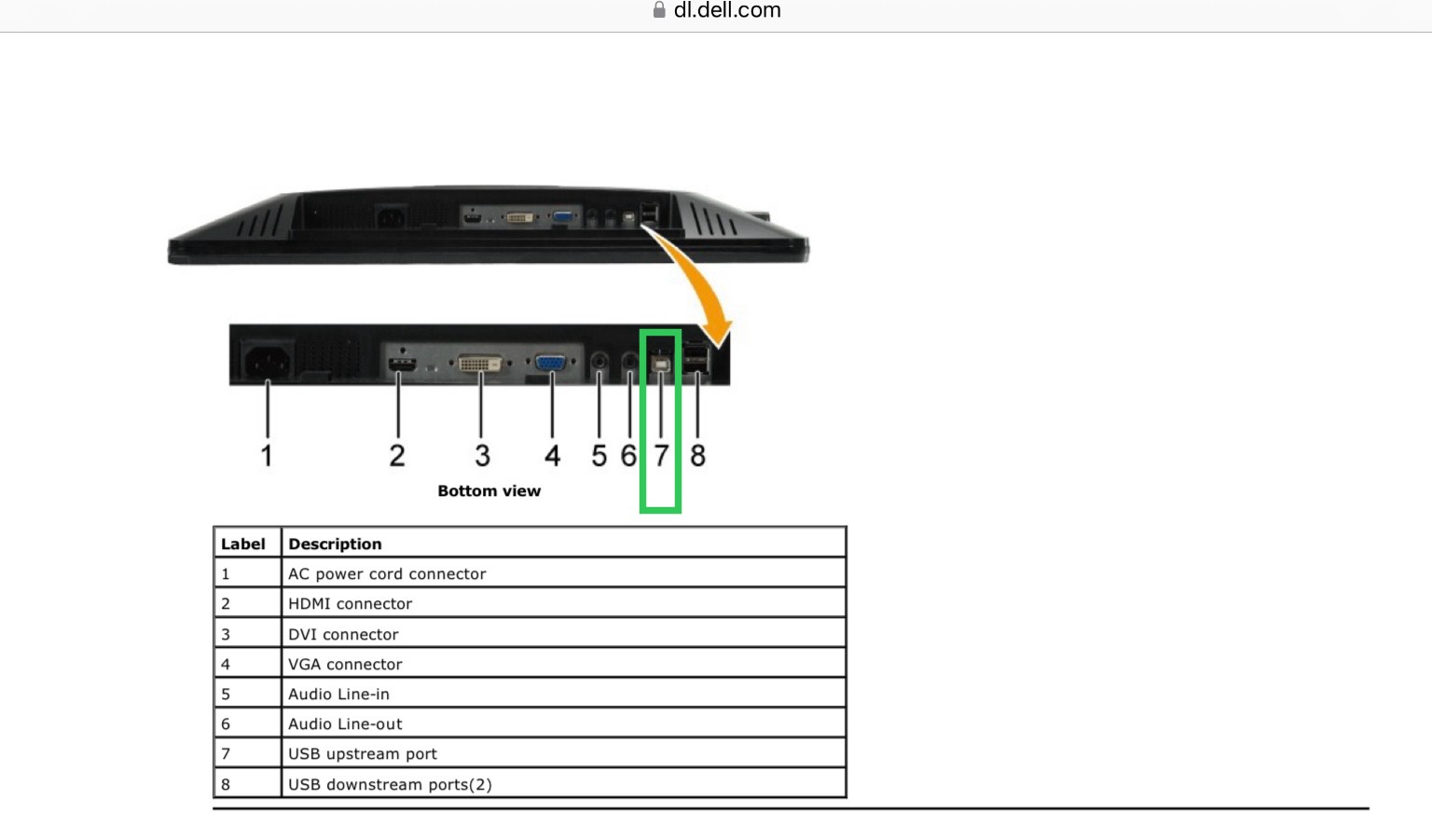 We must be looking at different monitors, or the manual must be wrong, because page 11 of the manual indicates that port 7 is one of the four downstream USB-A ports.