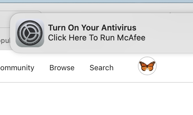 Software is up todate. I went to a website the infected my computer "Turn on your Antivirus- Your Macafe has expired- Click here to renew-- Click to run Antivirus". Pop ups keep happening about every 30 seconds. I have tried every suggested way to stop it with no luck-