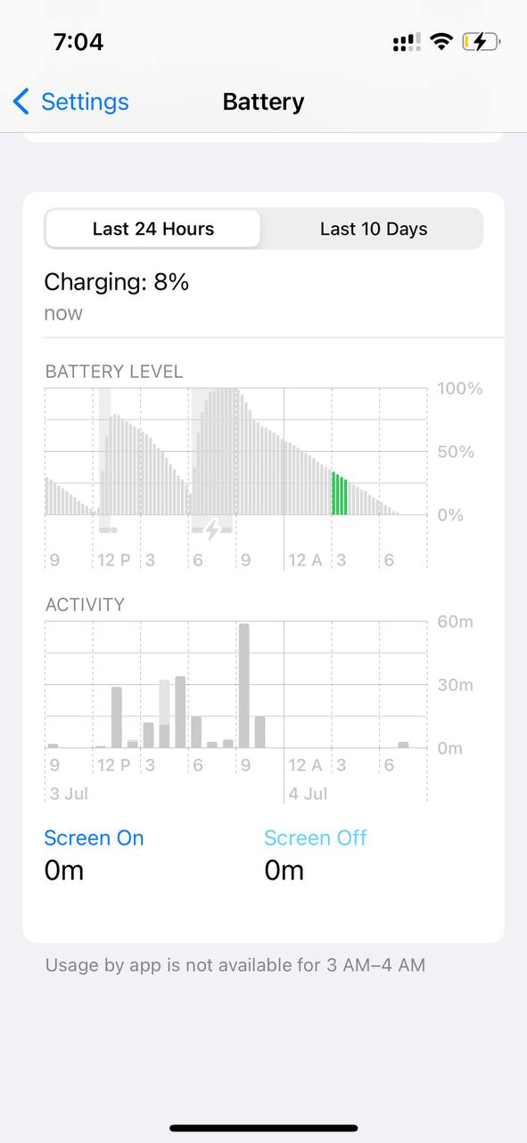All of the intervals from this night show "Usage by app is not available for X AM - Y AM", probably because I have closed all the apps when I was going to bed.