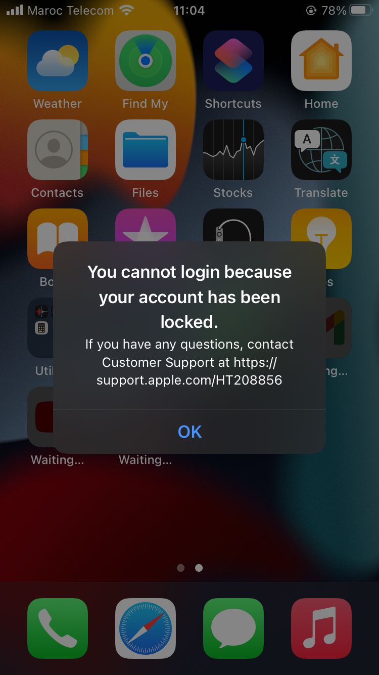 If you see a message that says "Your account has been disabled in the App Store and iTunes", there is a problem with your payment method on your account, to resolve the problem you need help from Apple support,  click -> contact Apple Support for help.