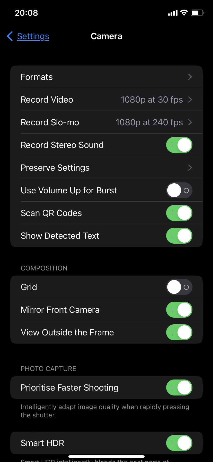 Hello, I recently noticed that the phone does not change the resolution of video recording. It is set to 1080p by default, but when recording a clip it is at 720p. From the settings, I changed it to all possible formats, there is no effect and 4k still records it at 720p. Some time ago I was tested the different variations and I know that there was no problem and I have shot 4k and that's how you did it. 38.5GB of 64GB used on the device and 53.7GB of 200GB used in iCloud.