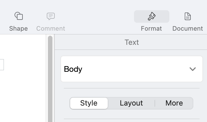 By the way, before asking, I did attempt to google this, and also looked in Apple's instructional pages, like this one: Create a document in Pages on Mac - Apple Support (Under "Create a basic page layout document," I could not make any sense out of Step 4: "Deselect the Document Body checkbox... (photo below). I see a way to toggle this, but no way to "deselect" it, so I assume I'm looking at the wrong thing?