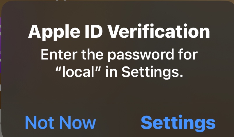 My Phone is CONSTANTLY spamming me to enter the Apple id password for something called "local". As far as Im concerned my phone has no third party applications so if this is some kind of virus it would definitely surprise me.