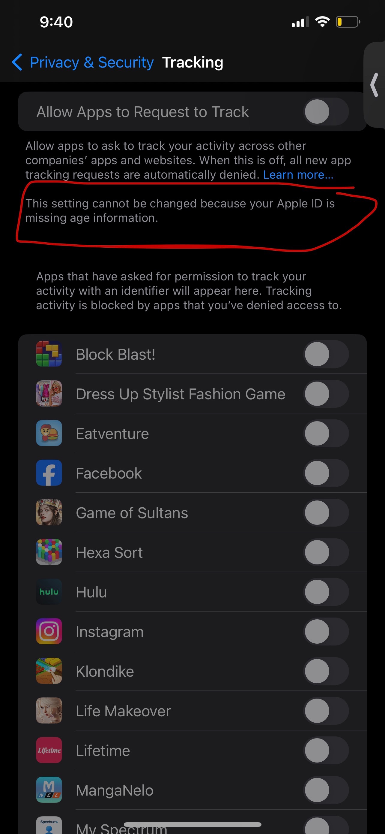 If you can't turn on the "Allow Apps to Request to Track" setting