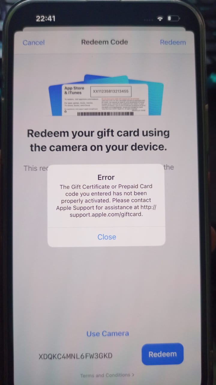 I want to redeem my gift card but unfortunately I received this message. Please solve my problem.