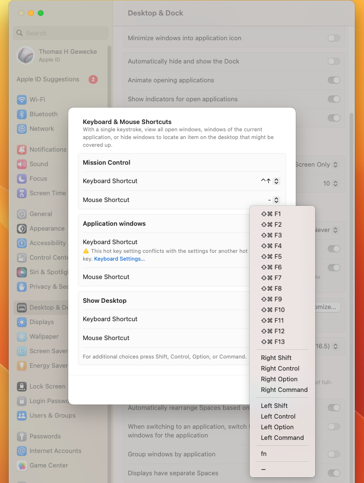 Desktop and Dock > Shortcuts
