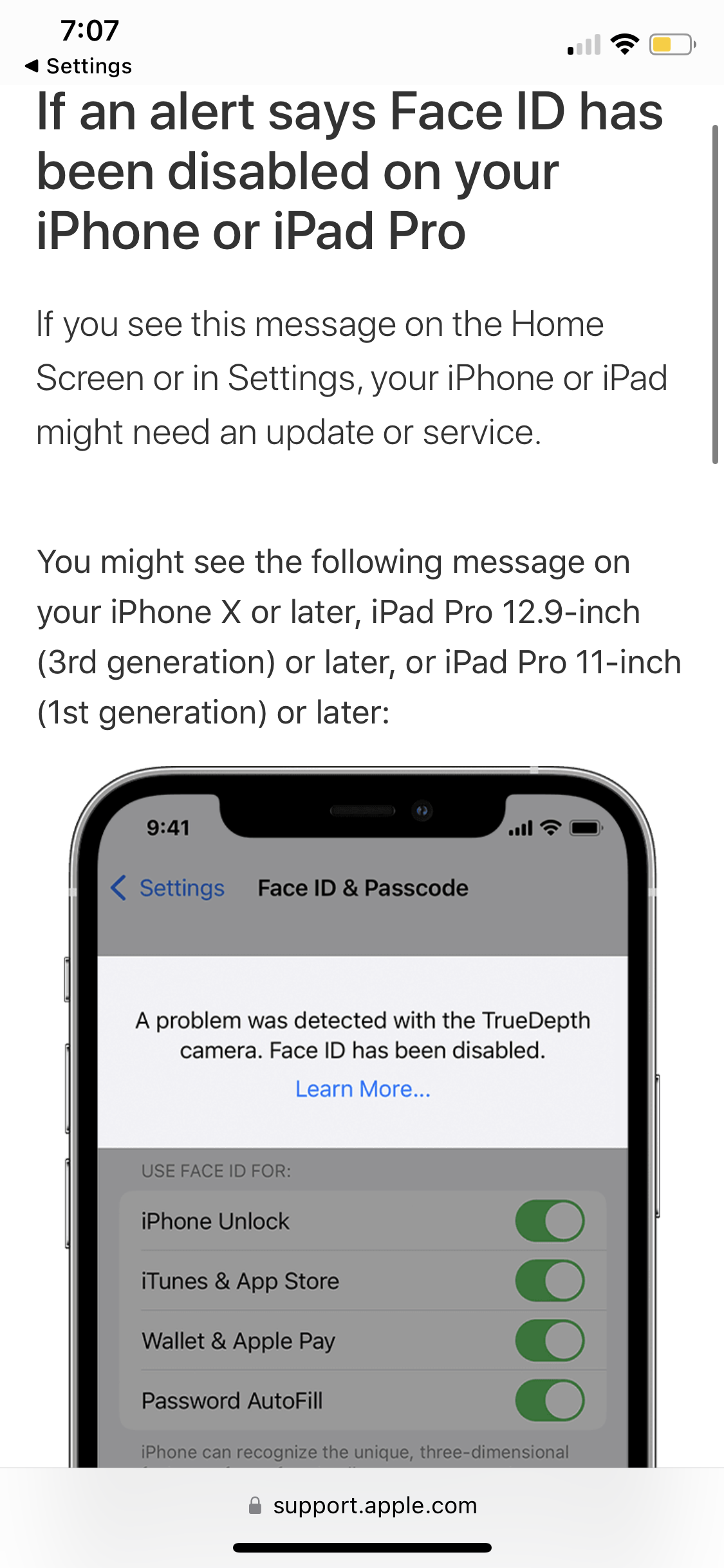 My face ID not working