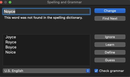 I have a check spelling window open in Pages v13.1, and this is what I see for its text: