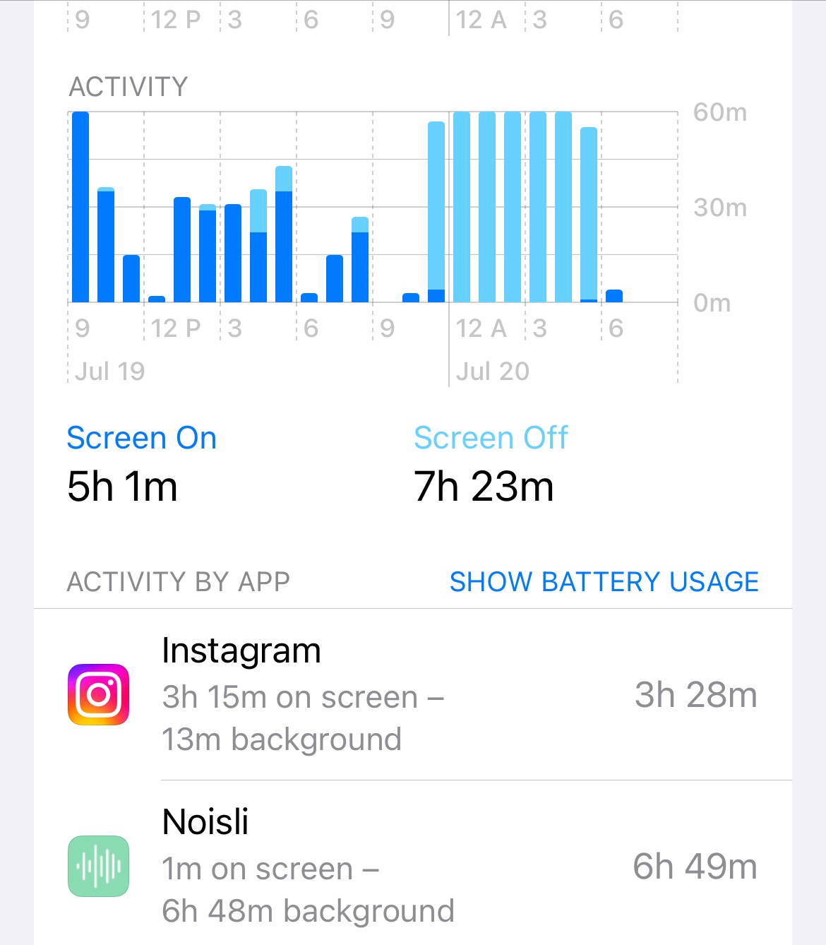 I use the app Noisli to fall asleep and I noticed a week or two ago that it’s using a lot of my battery during the night. It used to only use about 6% of my battery but now it uses about 30-35%. Before it did this and I looked at the battery it would say 1m on screen but never said background activity, and the bar graph didn’t have usage all night. I’m confused why it’s background activity when it just makes noise and it didn’t do this before. You might say turn off background app refresh, but it’s not even listed under background app refresh. Deleting and reinstalling didn’t do anything. It can’t use location either, so I’m confused about how to fix this. Fully turning off the phone doesn’t reset this either.