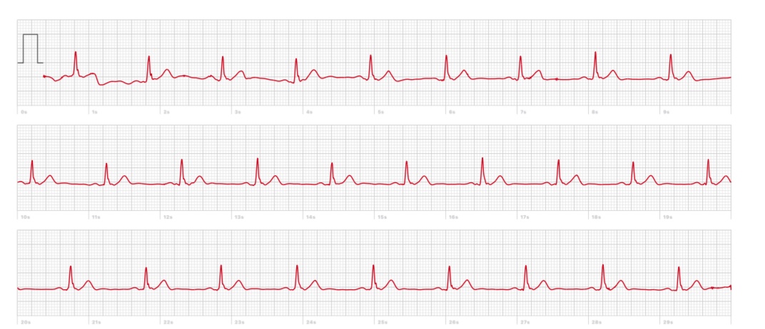 This is on an Apple Watch 6. Sometimes, my EKG looks normal. Other times, the tracing has 8 extra waves in between the R waves, varying in amplitude, but sometimes just as high as the R wave. Looks like sawtooth pattern. This is usually interpreted as a normal sinus rhythm or a poor recording. What is happening here? And how do I post a picture of this?