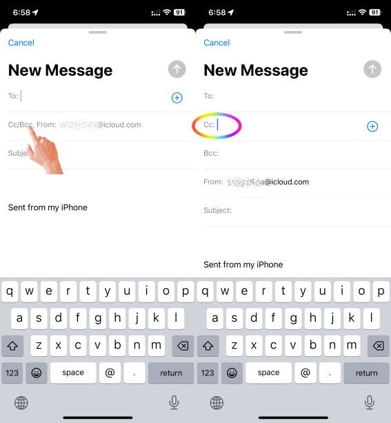 From the iPhone or iPad mail settings, I am not able to c.c. myself in all of my emails. The only choice I have is b.c.c. How can I set Mail to c.c. myself when using the iOS devices to write my emails?