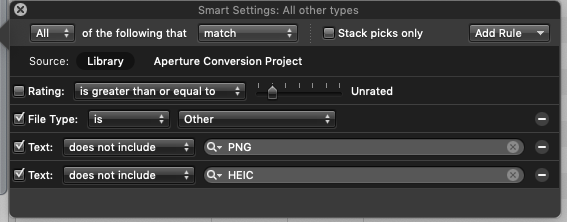 • Any migration from Aperture to Photos would have best been done on macOS 10.14 or earlier, when we could still run Photos and Aperture side-by-side. On Mojave we can compare the new, migrated Aperture library in Photos directly to the old Library in Aperture and fix incorrect dates, missing metadata, incomplete smart albums, etc.