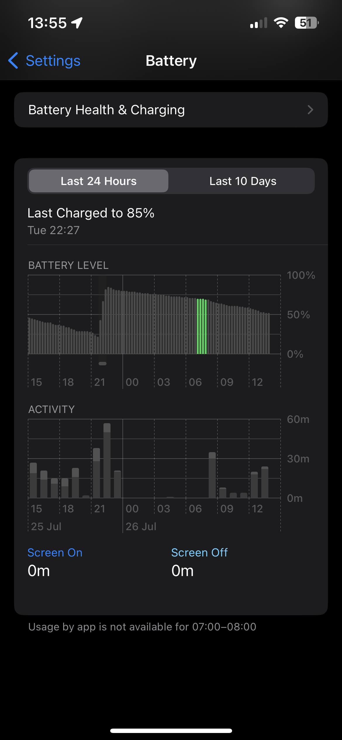Here you can see that I didn't use anything and still the battery was constantly dropping. It should be noted that in the settings I have the background app refresh disable. Even this happens to me with the airplane mode activated. If anyone can help me thank you.