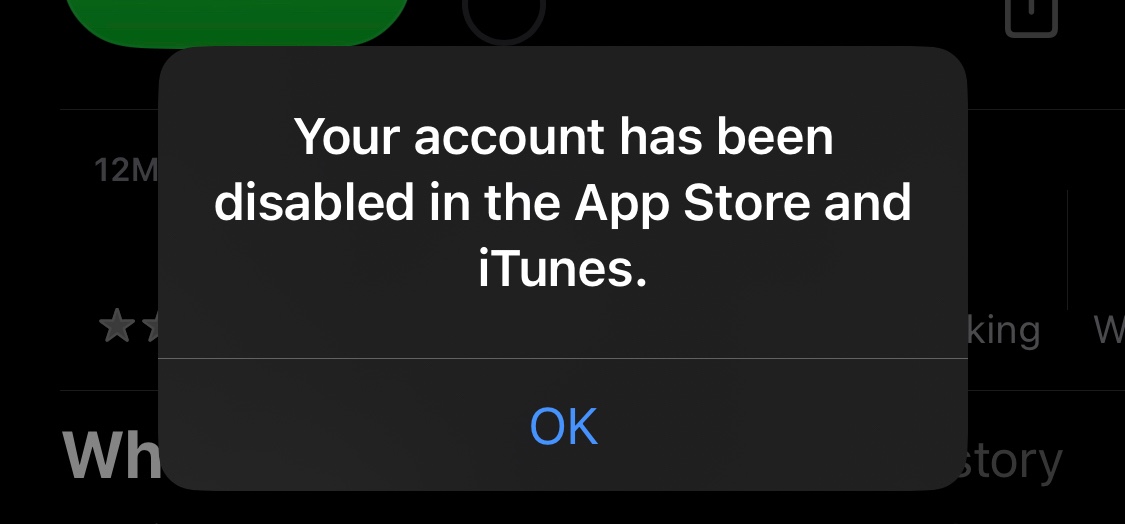 👉 If you see a message that says "Your account has been disabled in the App Store and iTunes", there is a problem with your payment method on your account, to resolve the problem you need help from Apple support, click -> contact Apple Support for help.