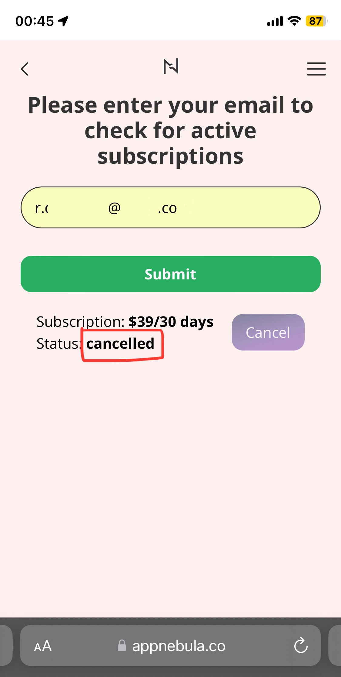 I don’t see a subscription for the app nebula Nicosia and I want to cancel they have been taking $45 monthly plz help