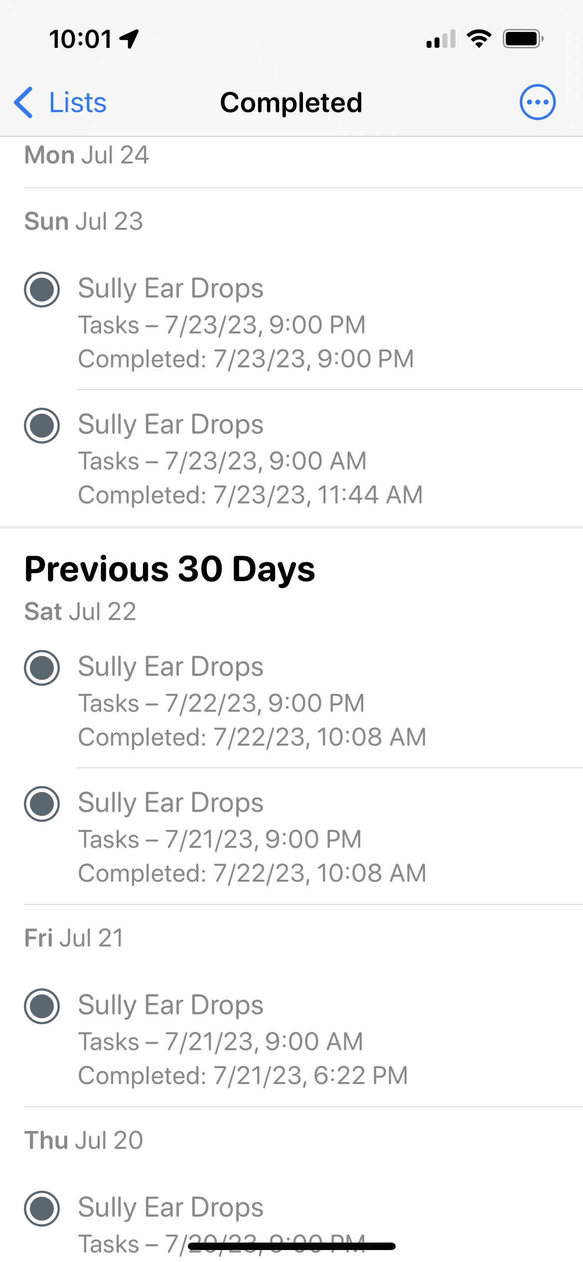 I've set up a reminder on/about 7/12/23 to remind me of something every 12 hours for 10 days. I set the end date to 7/22/23. Yet, it's still giving me reminders, even when I click the radio button that it's complete. A new one just pops up for 12 hours later - and we're well beyond the "end date" of 7/22/23.