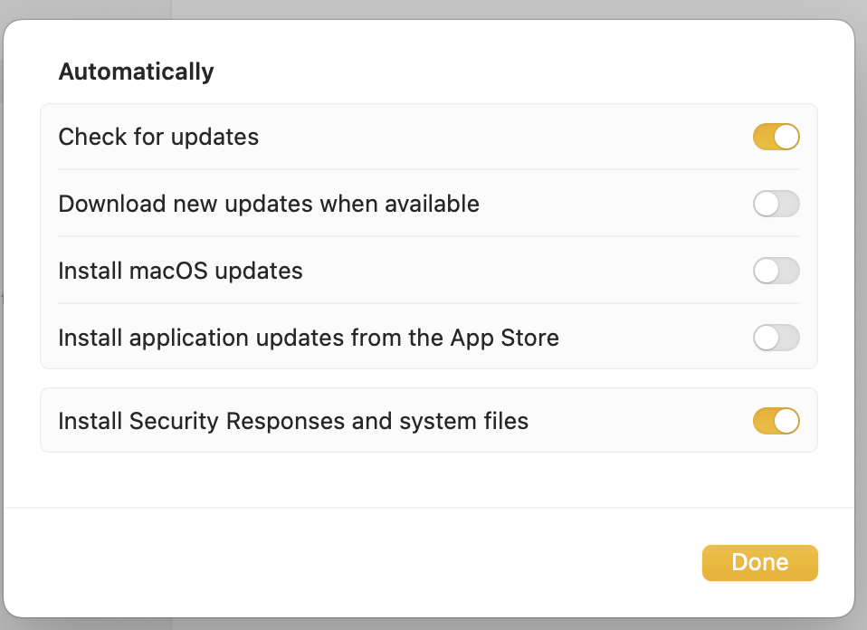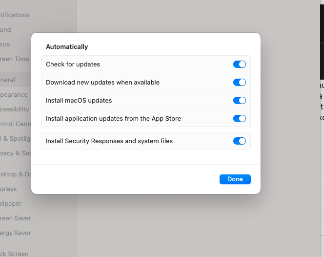 obviously it 'automatically checks for updates', but when i go to settings > general > software update it automatically checks for any updates once i reach that screen, so does the toggle mean do it in the background? if so i dont see a need for me to have the toggle on because i follow whenever apple releases software and i prefer to install it manually rather than have it automatically ping me when there is a new software available. if thats what this toggle controls then id like it off. asking someone who knows stuff abt macs to answer this cuz im new to the family lol. thanks so much,