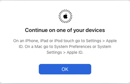 every time I tried to create an app-specific password, I get this message (CONTINUE ON ONE OF YOUR DEVICES)