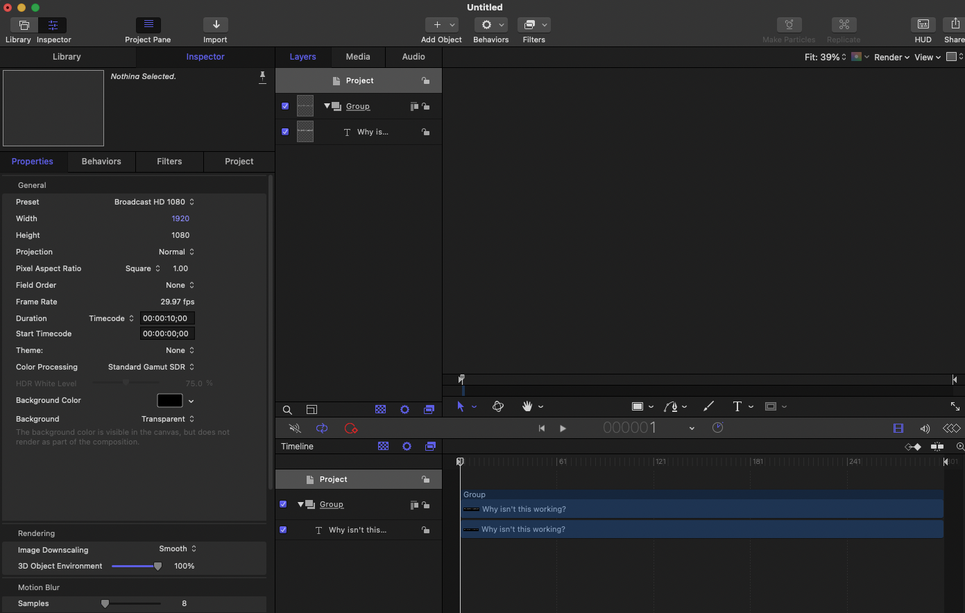 Apple Motion Objects suddenly disappear
