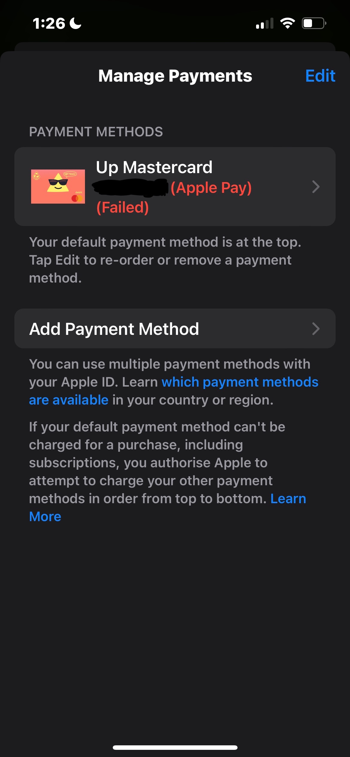 Whenever I try to upgrade my iCloud space, it asks for my payment, which I make, then it says I need to update my payment method, which I thought I did, but it still won't work. Why does this keep happening? How do I update my method?