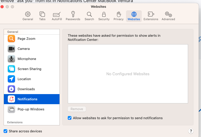 Unable to remove "ask you" from list in Notifications Center MacBook Ventura