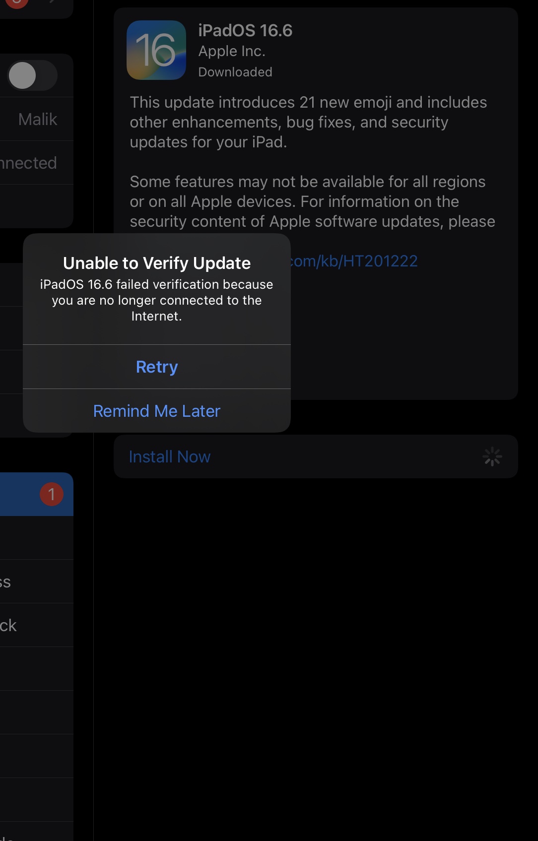 You should note that for your iPad to install an available update, its battery must be charged to at least 50% capacity - and/or be connected to its Power Adapter. Similarly, the iPad can only be updated over a standard WiFi connection - or be updated by a PC or Mac using iTunes or Finder - over a USB connection.