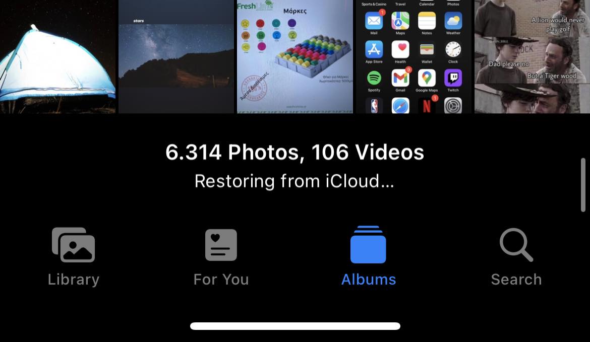 It started syncing my photos with the progress bar and then suddenly, next day it stopped that and started showing "Restoring from iCloud".