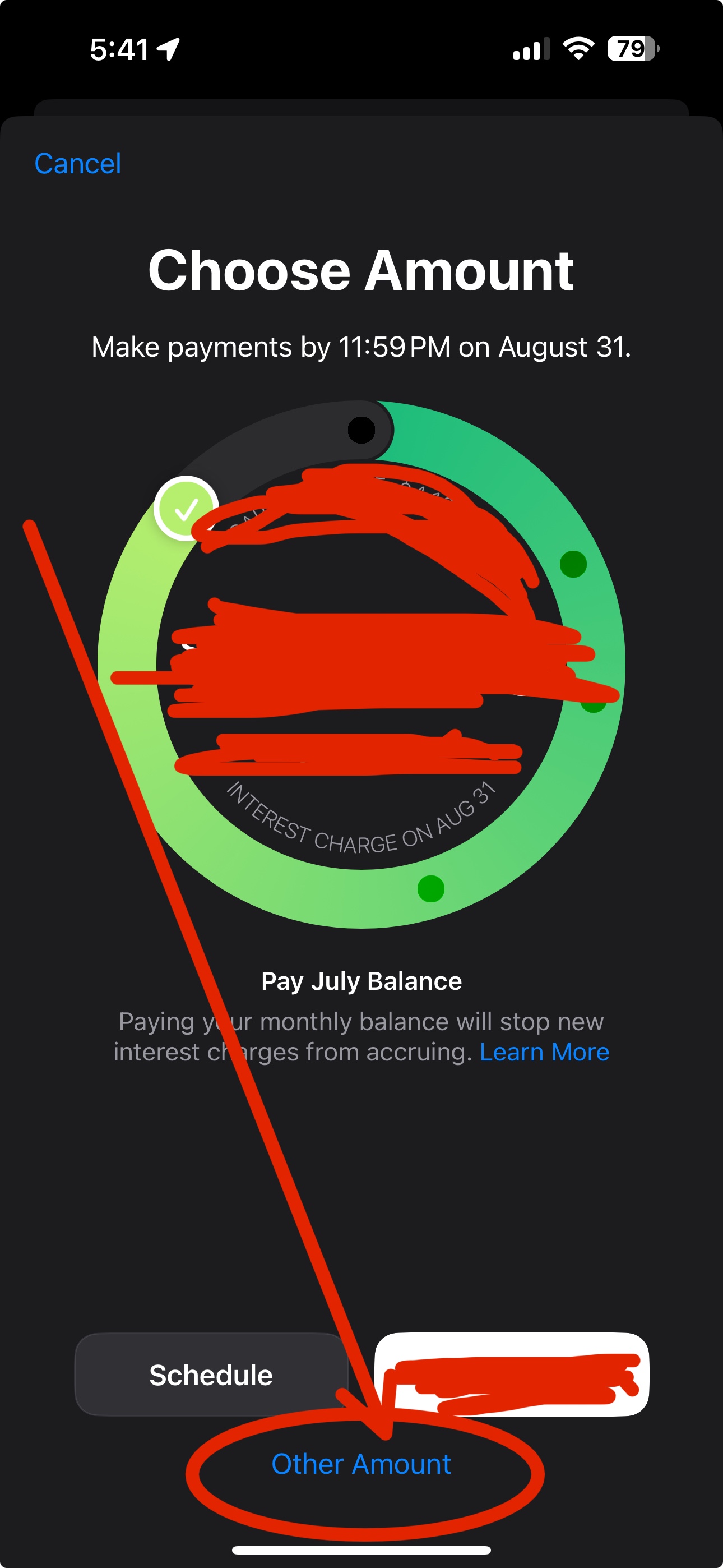 Open Apple Card in your Wallet app. Tap Pay or Pay More button. Tap Other Amount at bottom of screen. Enter amount to pay using keypad. Make sure it does exceed amount you transferred to Apple Cash. Make sure Apple Cash is selected as funding source. Double click side button to make payment.