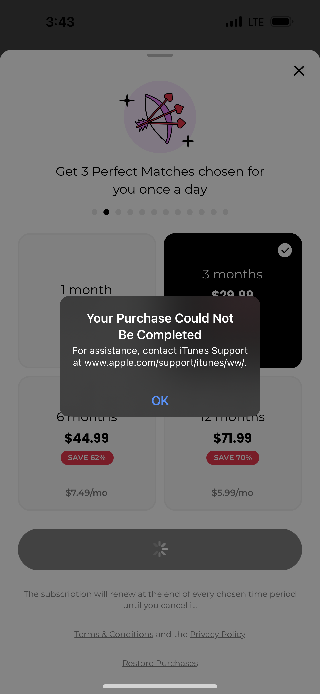 If you get a message -> Your purchase could not be completed, you need to Add a payment method to your Apple ID – Apple Support (UK)
