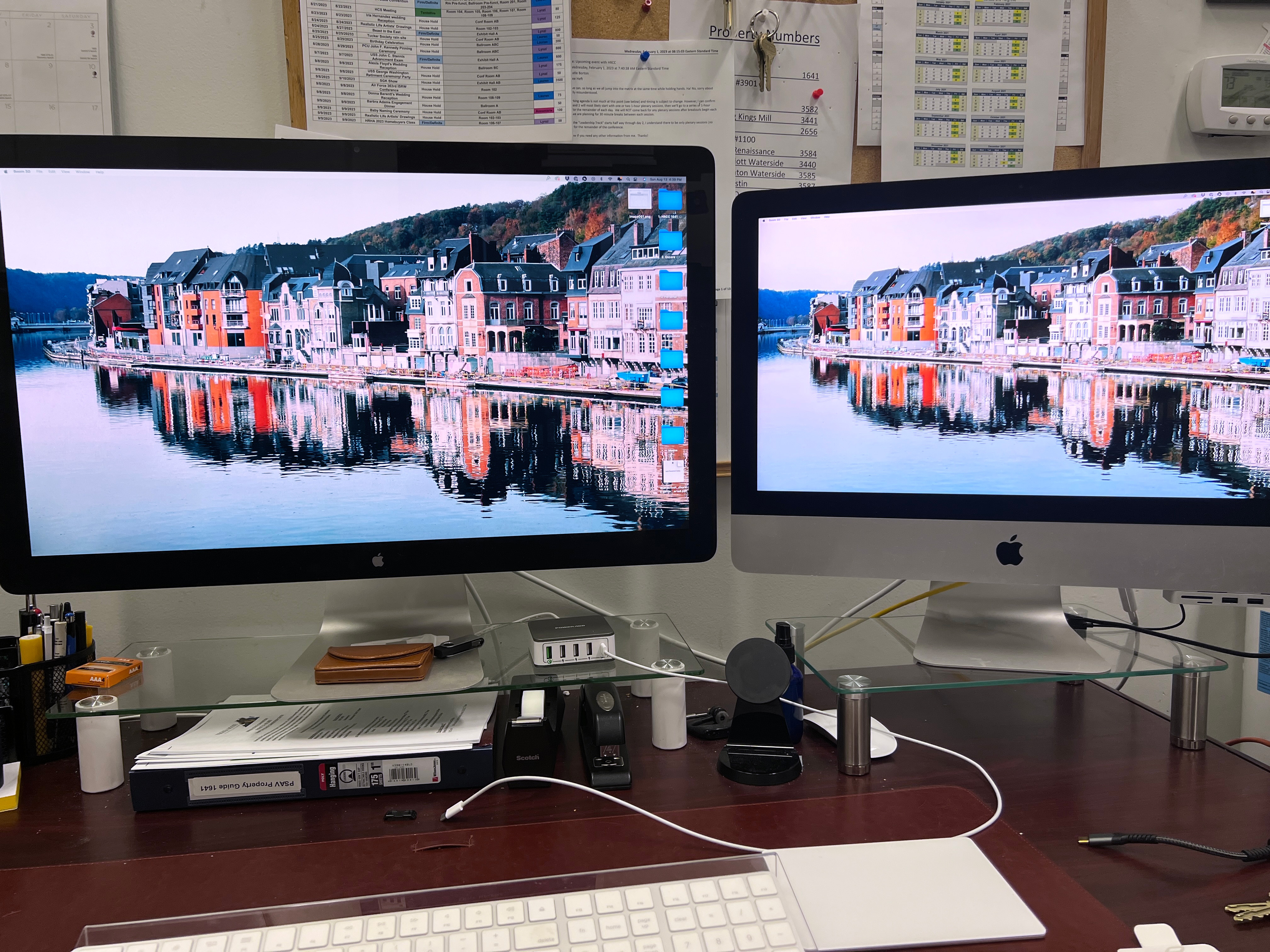 I have a 2017 iMac. Just received an early 2000 Studio Display. It has a cord with a magsafe charger/mini display cable attached. The new iMac doesn't have that on the back, as an choice. Is there an option for using the older monitor, as a 2nd monitor. What cable/adapter can I use?