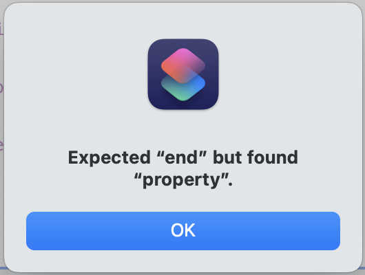 Just would like to know if this is correct per your suggestion, as it does not run as an AppleScript or as AppleScript within Shortcuts.