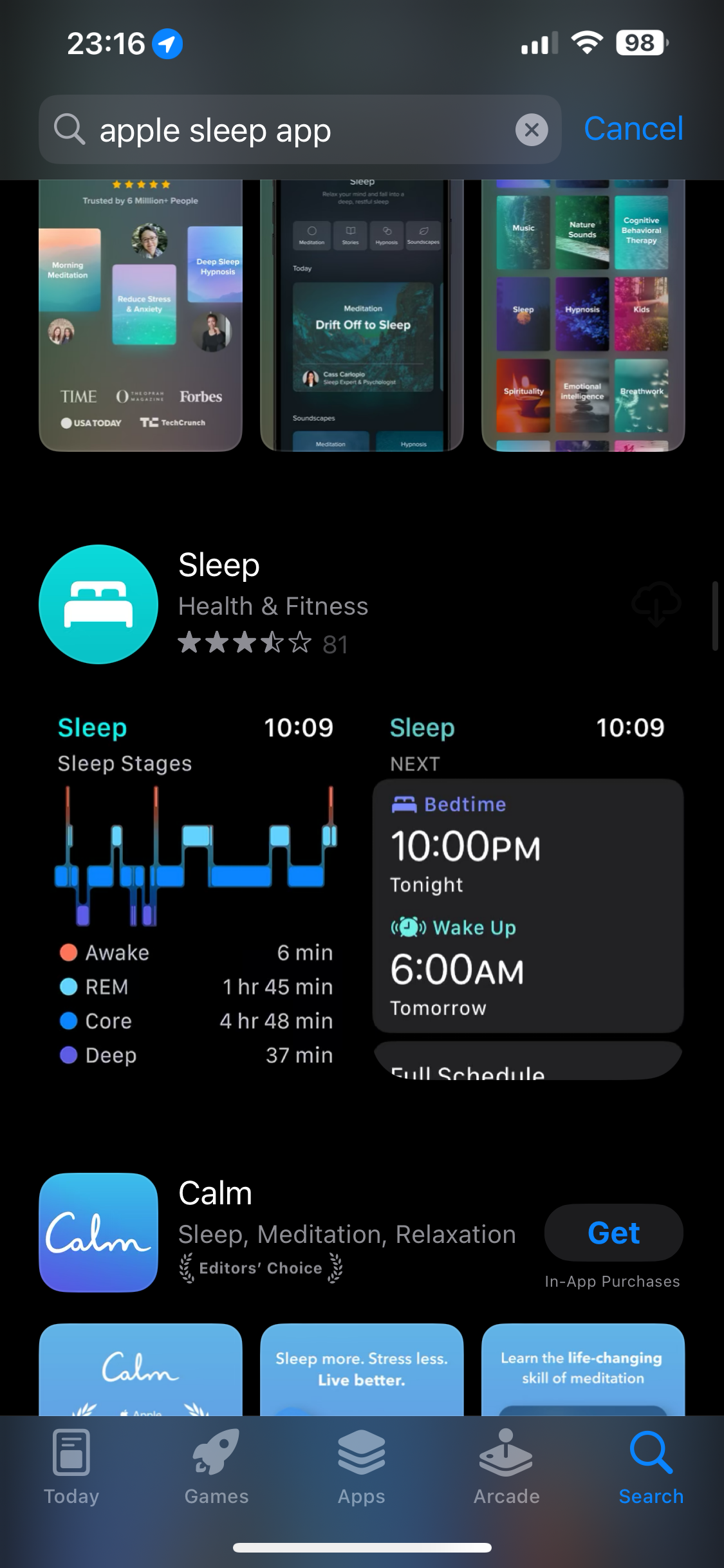 Or Type in “Apple Sleep app” and scroll wayyyyyyy down for the bed logo in some blue/ teal color.