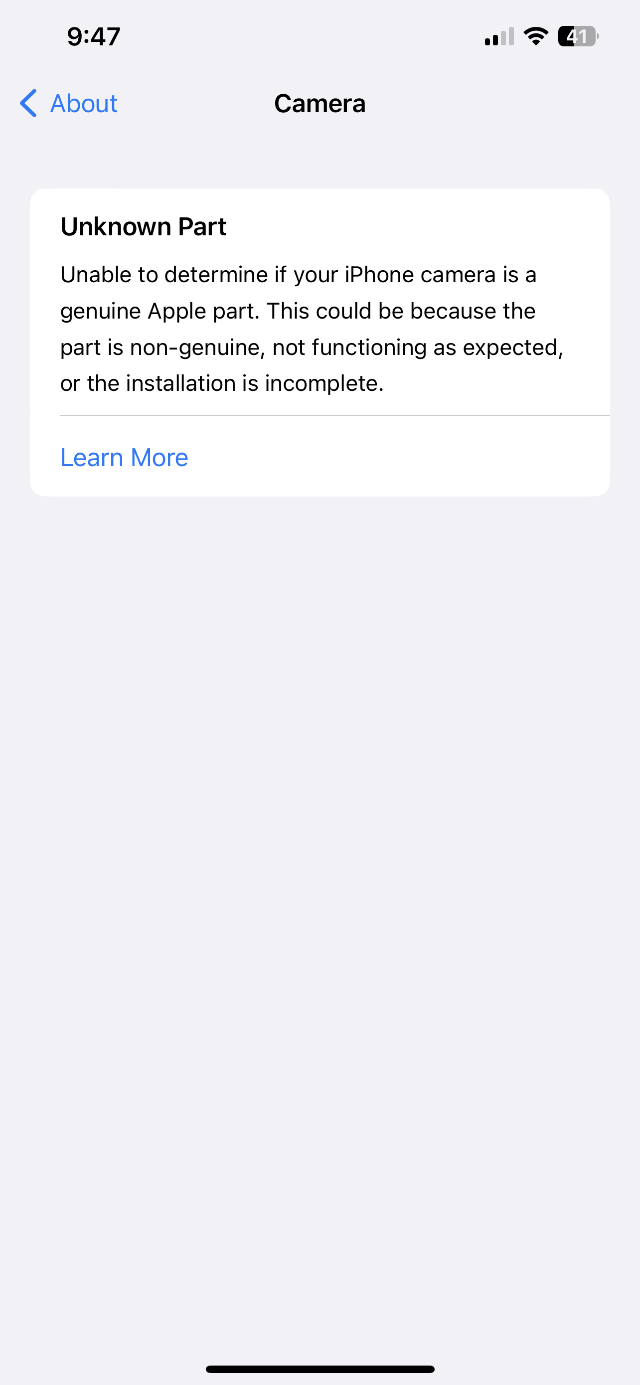 I accidentally dropped my iPhone. No damages, but several hours later I received a message saying that my iPhone camera is an unknown part. Can u please fix this issue. When I open settings they say that they have an important camera message and that message is that my camera is an unknown part. I tried something’s, but nothing worked out and now I am out of ideas. I hope u can help me fix the problem.