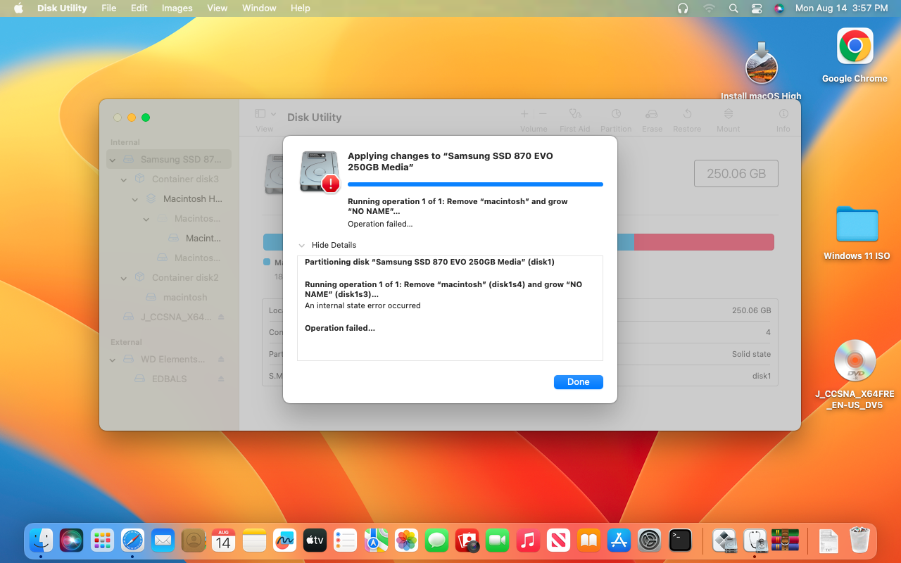 There's an error when I format my 70gb partition back to my 250gb Samsung as it is shown on screen shot pls help!