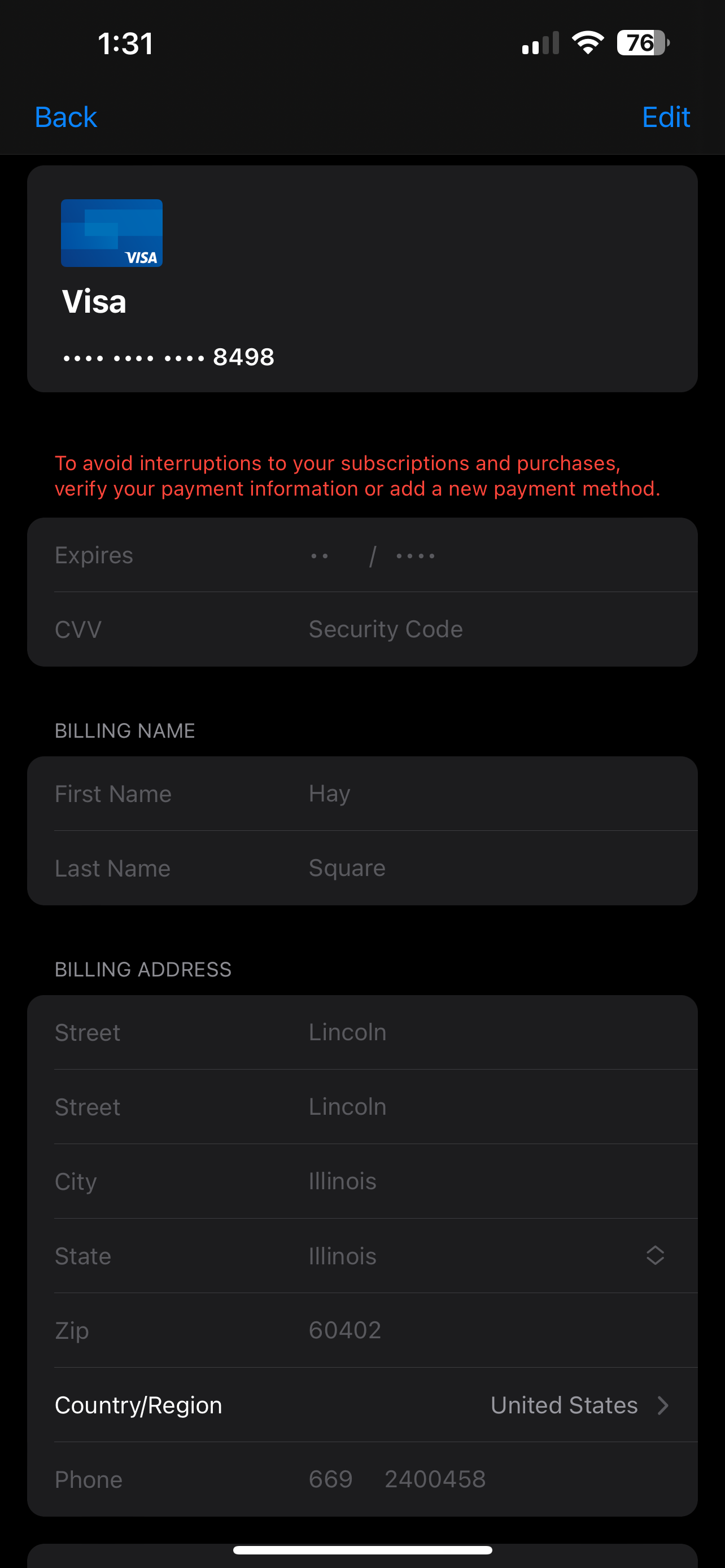 "If you change your address, the credit or debit card information that you use with your Apple ID might be automatically updated by your financial institution, and you don't need to take action. But if there's an issue [such as you having a subscription or being a Family Sharing Organizer], add a new card first, then remove the old card."