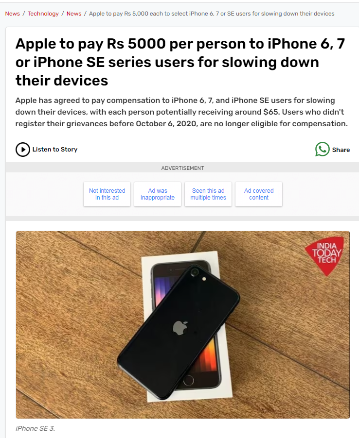 Just curious Is Apple to pay Rs 5000 per person to iPhone 6, 7 or iPhone SE series users for slowing down their devices ????