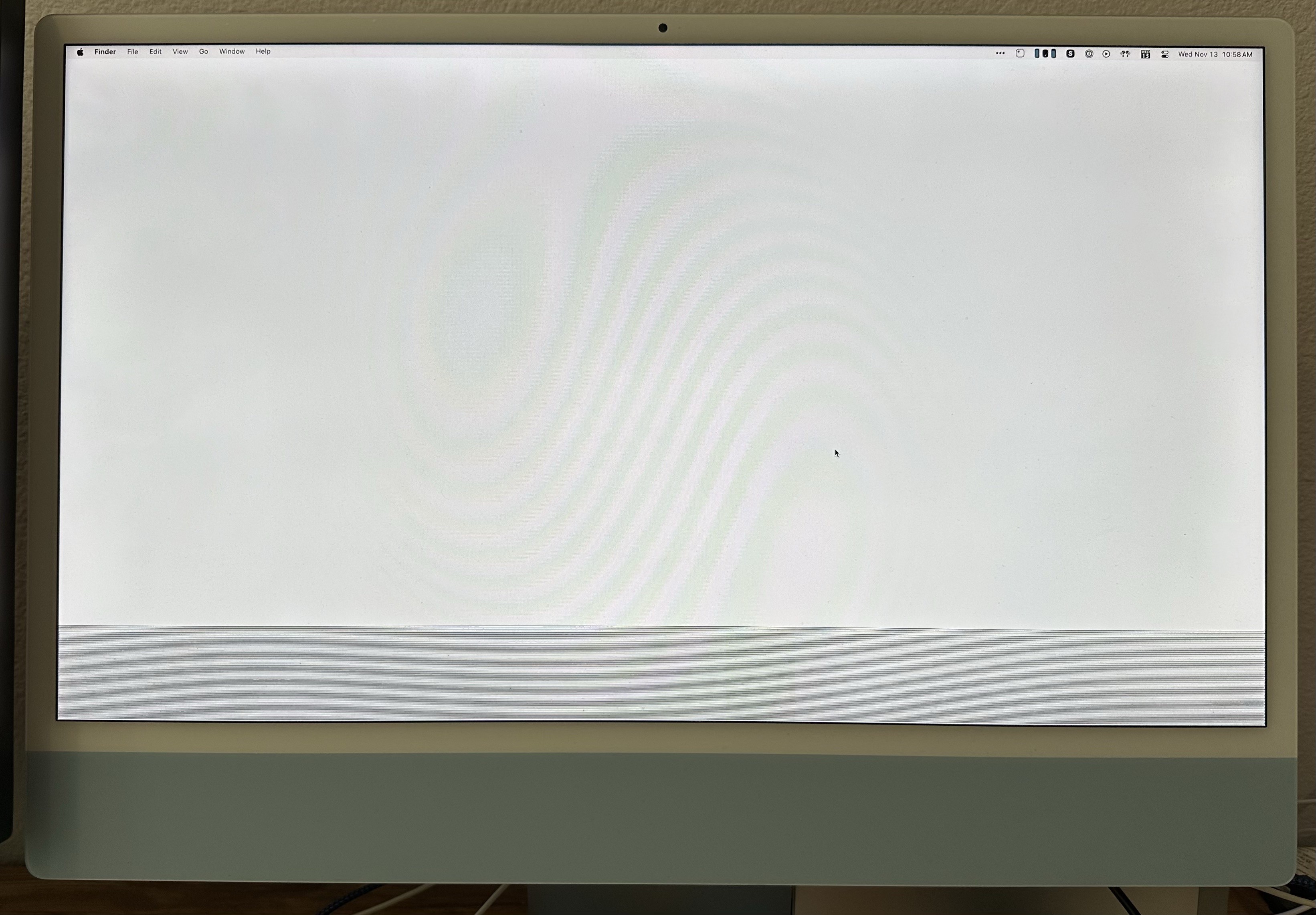 For the past 2-3 days I have been seeing a greyish bar on my M1 iMac's screen. After a few hours the grey bar starts to blink on & off, sometimes disappearing entirely but reappearing again after a 'wakeup from sleep'.