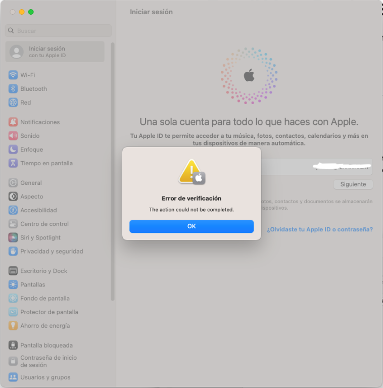 I have a Parallels virtual machine running macOS Ventura, but when I try to access my iCloud account it gives me an error saying "Verification failed - The action could not be completed". I don't know how this can be corrected.