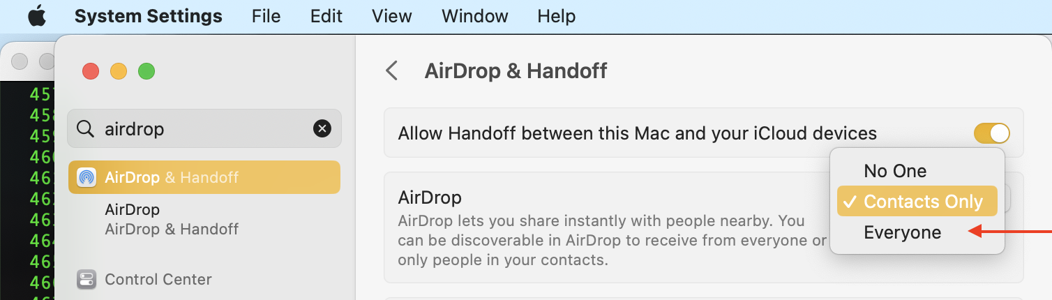 How can I receive AIrDrops from an admin profile rather than the owner MacBook profile??