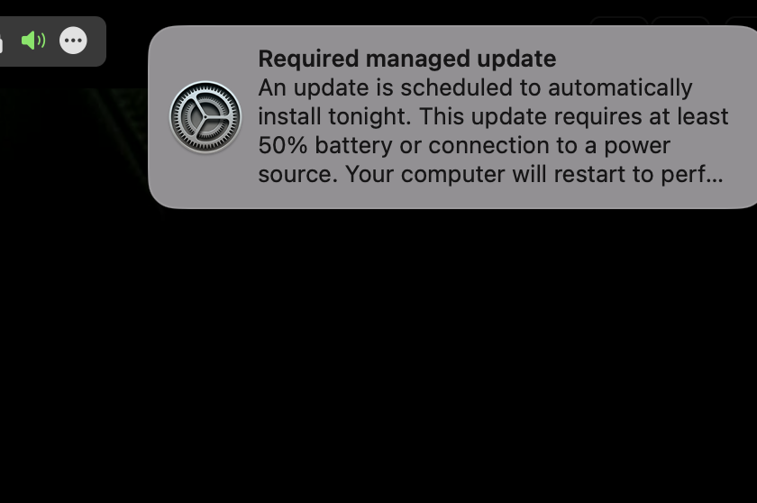 Is yours a MacBook Air owned (therefore managed) by your employer? Could be one of their updates that's not coming thru.