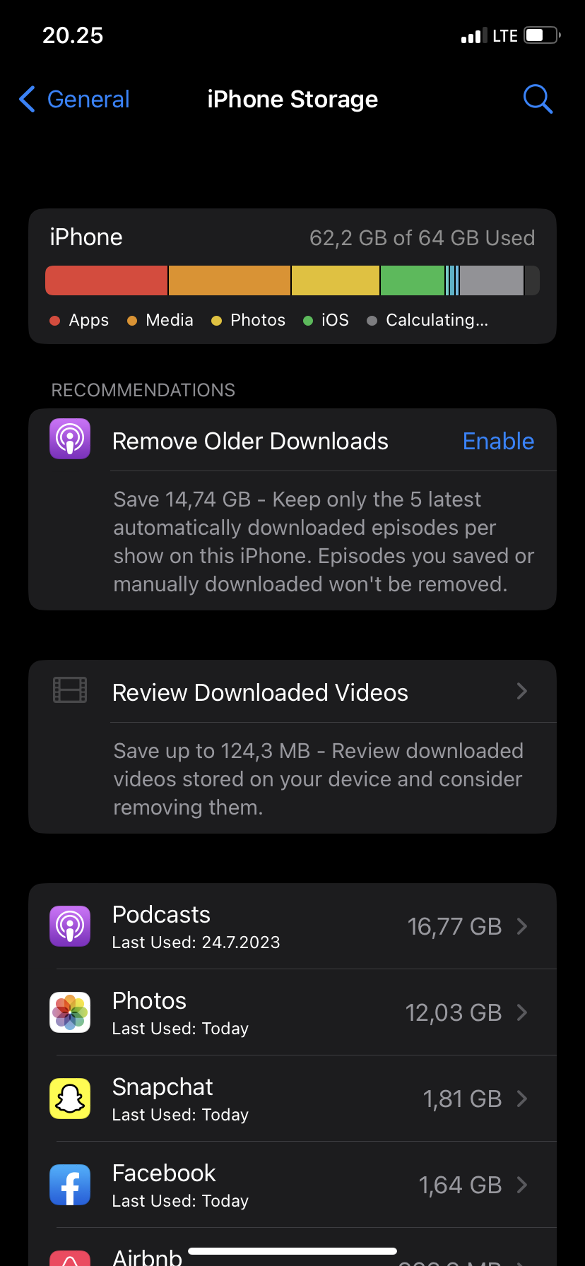 But I can’t do pictures it shows that you don’t have enough storage. How? I have 200-64-5,6= 130,4GB..