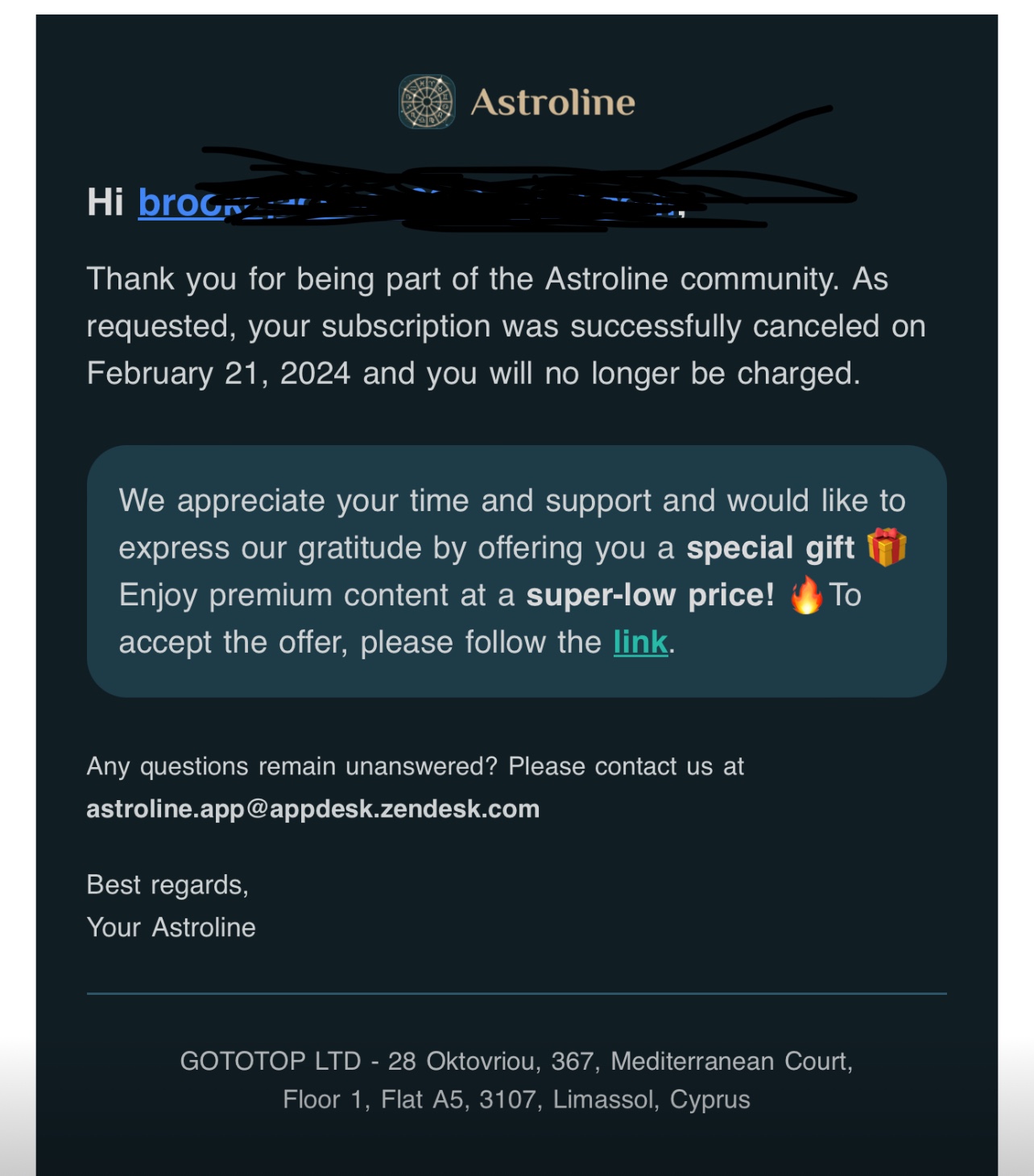 Today and after many messages to push Astroline via (astroline@support-team.app) to answer me asking for a partial refund and in alignment with EU laws that are stated on their website they agreed to a partial refund. If you are in the EU you are entitled within the 14 days window to retract yourself from the purchase see here under: