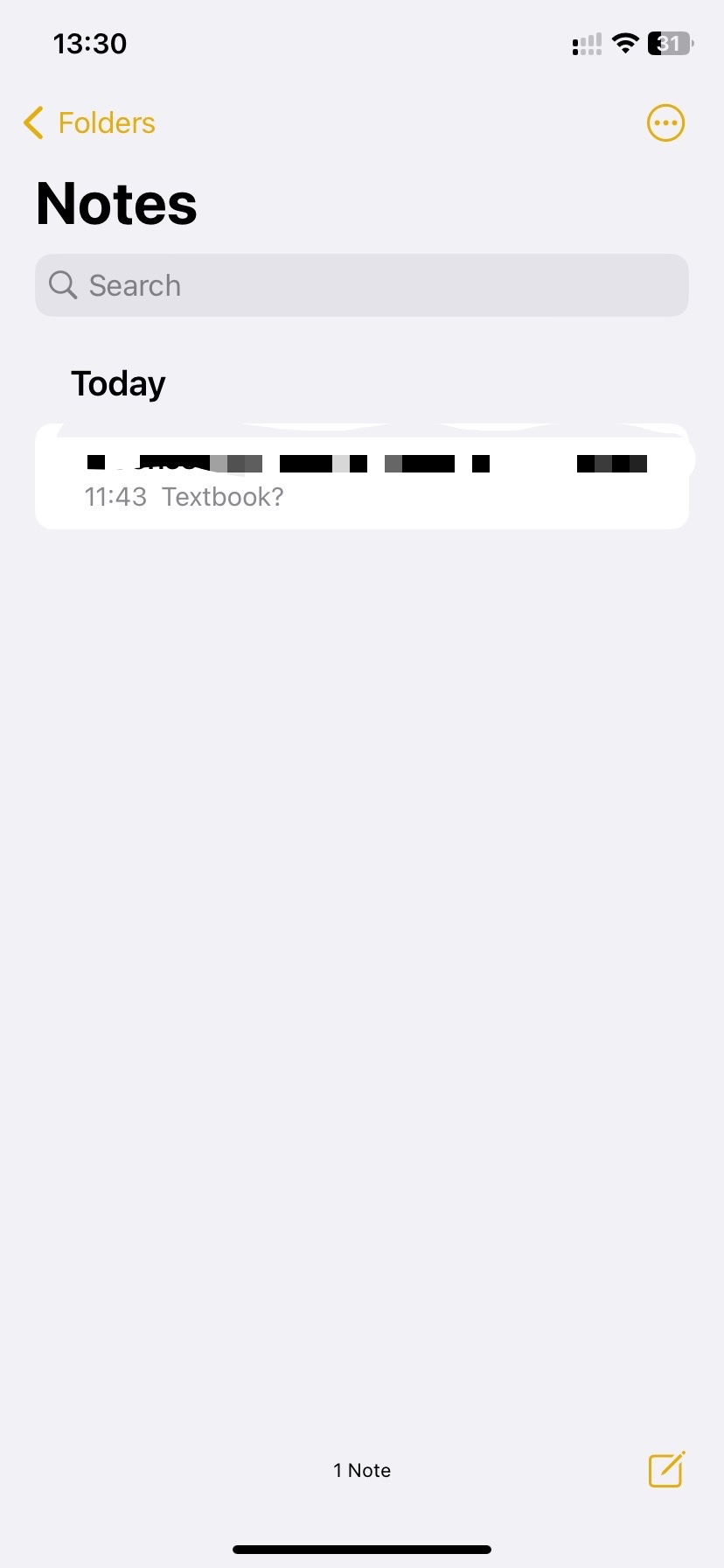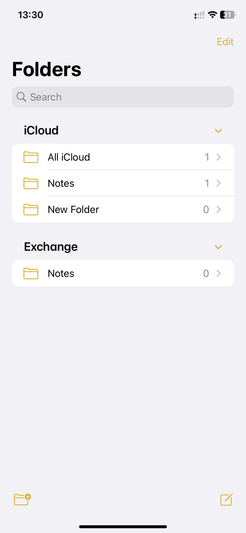 1. Open Notes, then tap the back icon < until you see your Folders list.