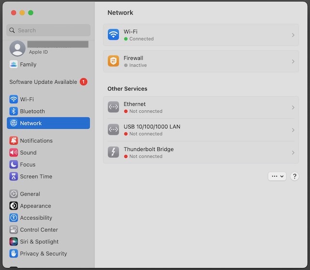 ok, under network it used to say thunderbolt, ethernet and wifi now it only have wifi, why is that.
