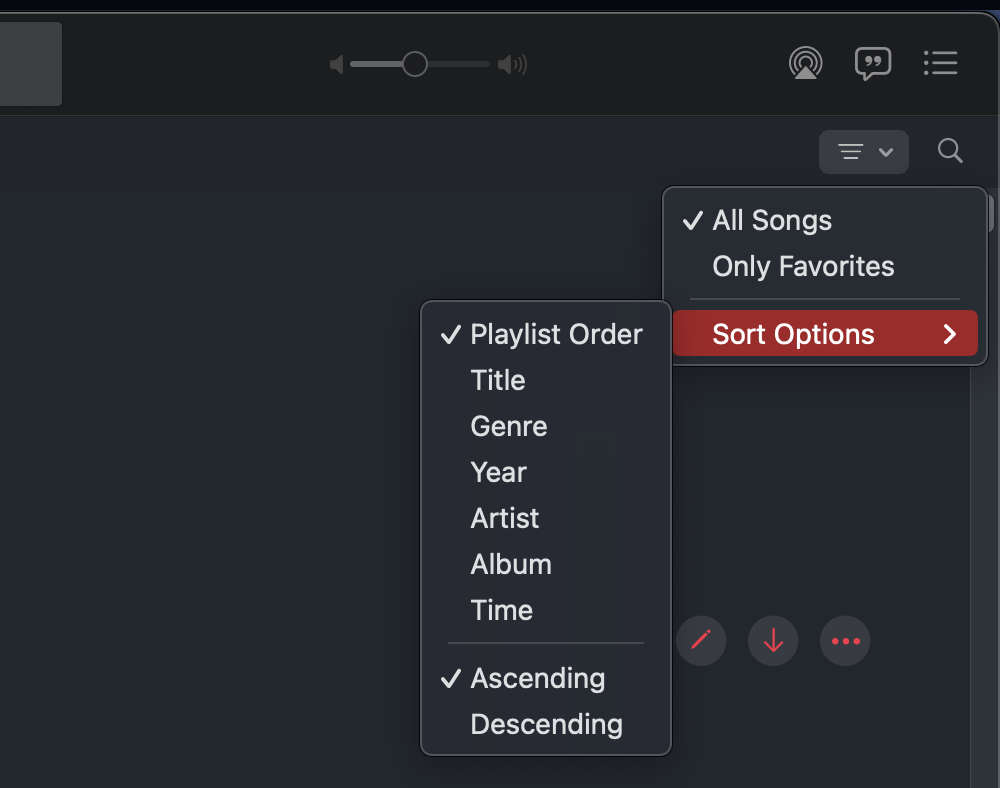 In bothe Playlist view and ARtist view you can choose a sort option.
