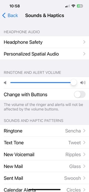 Have tried changing sounds, moving volume controls, muting and unmuting, turning airplane mode on and off as well as blue tooth. Tried everything I can think of, any suggestions?