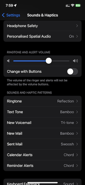I have an iPhone 14 I get a soft swish sound when I receive a txt, my setting is set for ding. All other notifications play sounds. Phone call, weather alerts, etc.